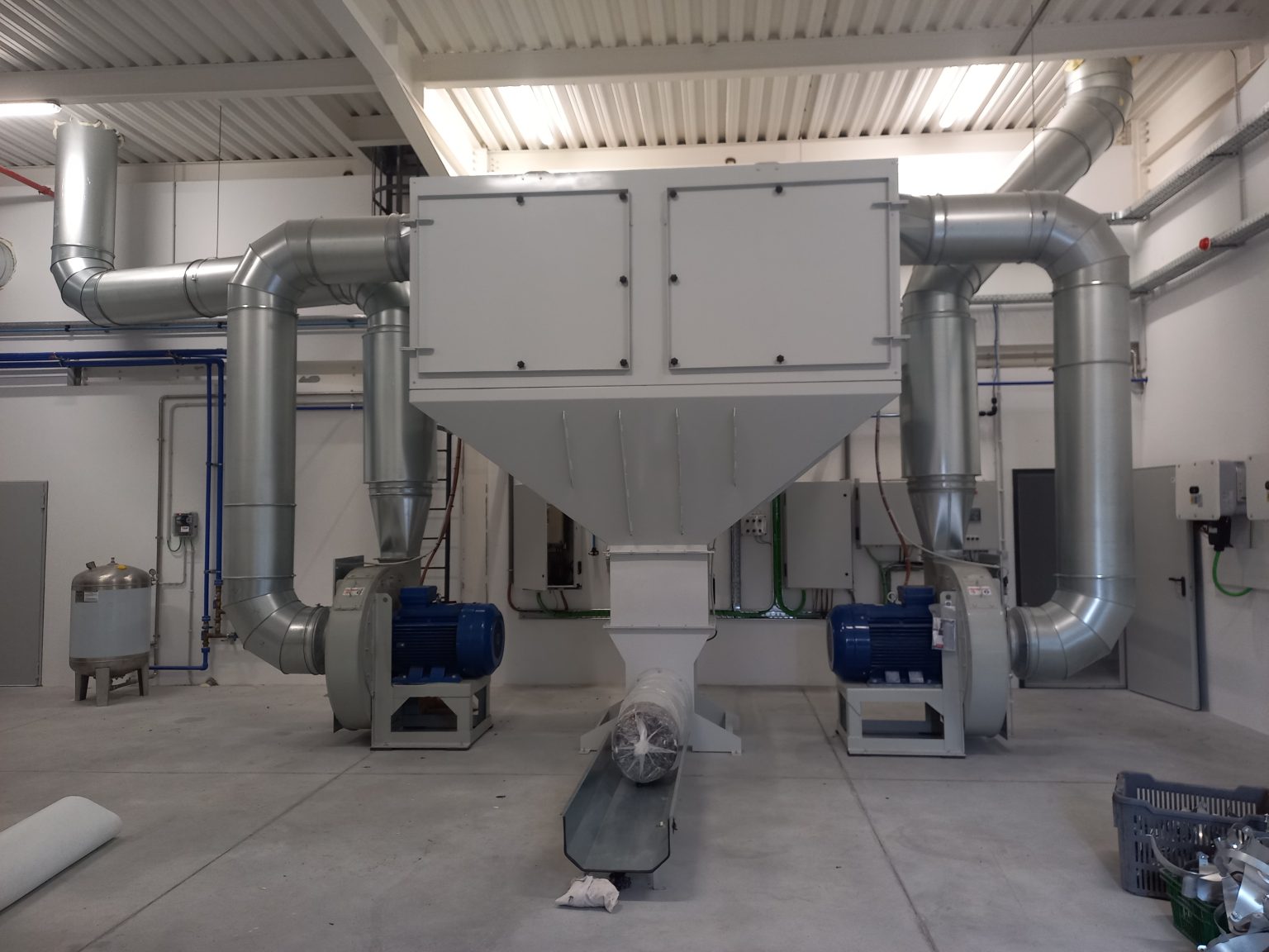 Aspiração e vácuo centralizado, limpeza e transporte pneumático com descarga automática